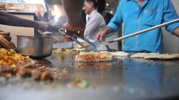 A sizzling large pan is a common sight on street-side eateries in Mumbai