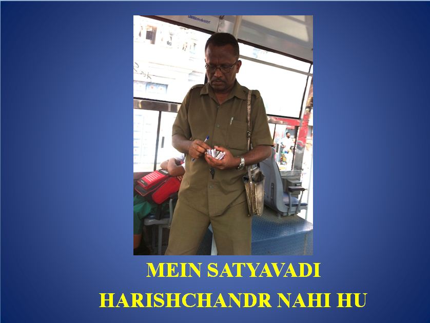 He thinks he is the hero and the baap of the bus. He will seat himself near the entrance of the bus, adjust his hair, see if his shoes (matching his shirt) are still clean, pat his face dry with a special handkerchief, hum constantly, and even use a clever line or two while handing you your ticket. If he wasn’t a BEST conductor, he could be Vivek Oberoi’s understudy. Or Vivek Oberoi himself.